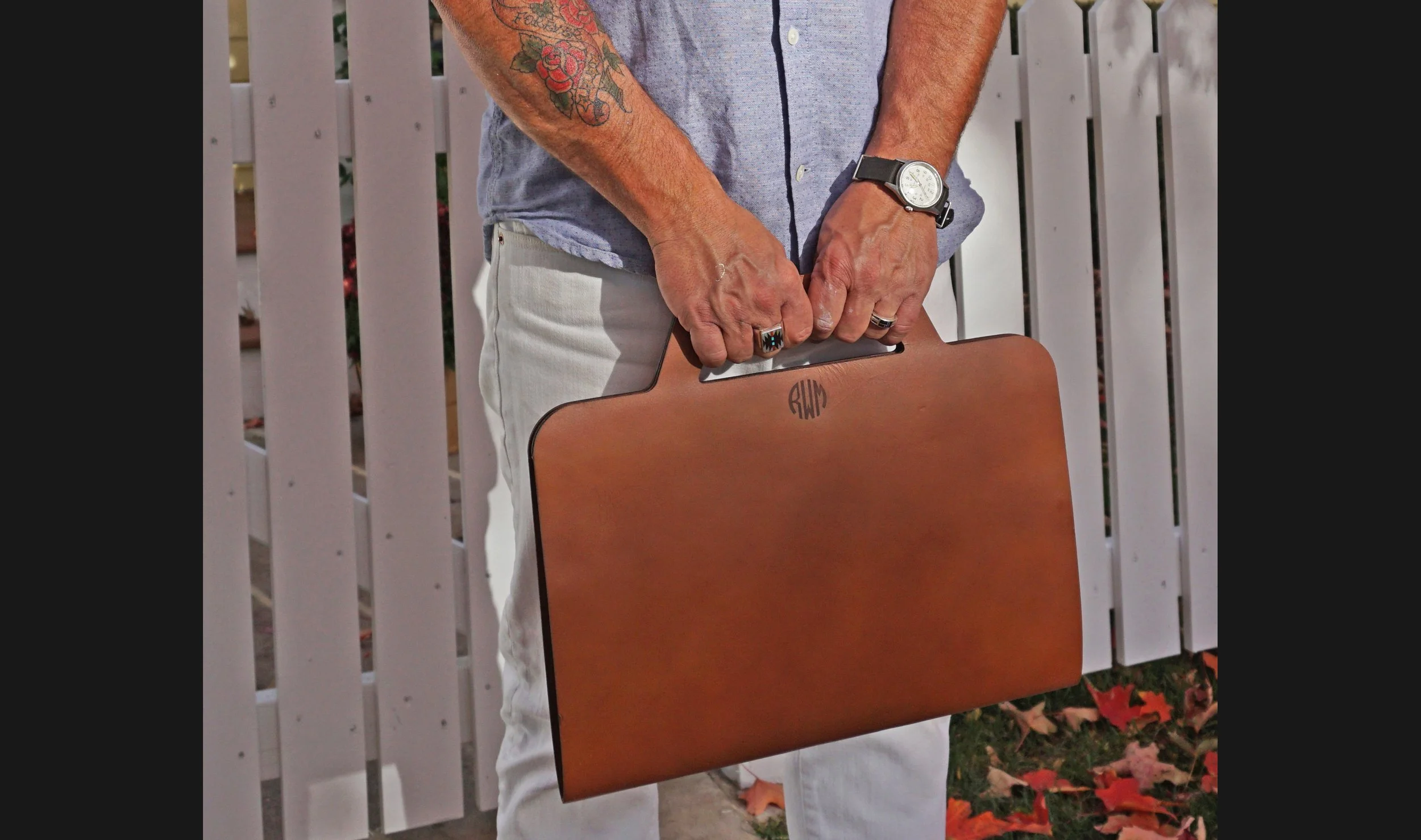 Natural Veg Tan shown new, and after one year of love…the sun + your hands age the portfolio beautifully