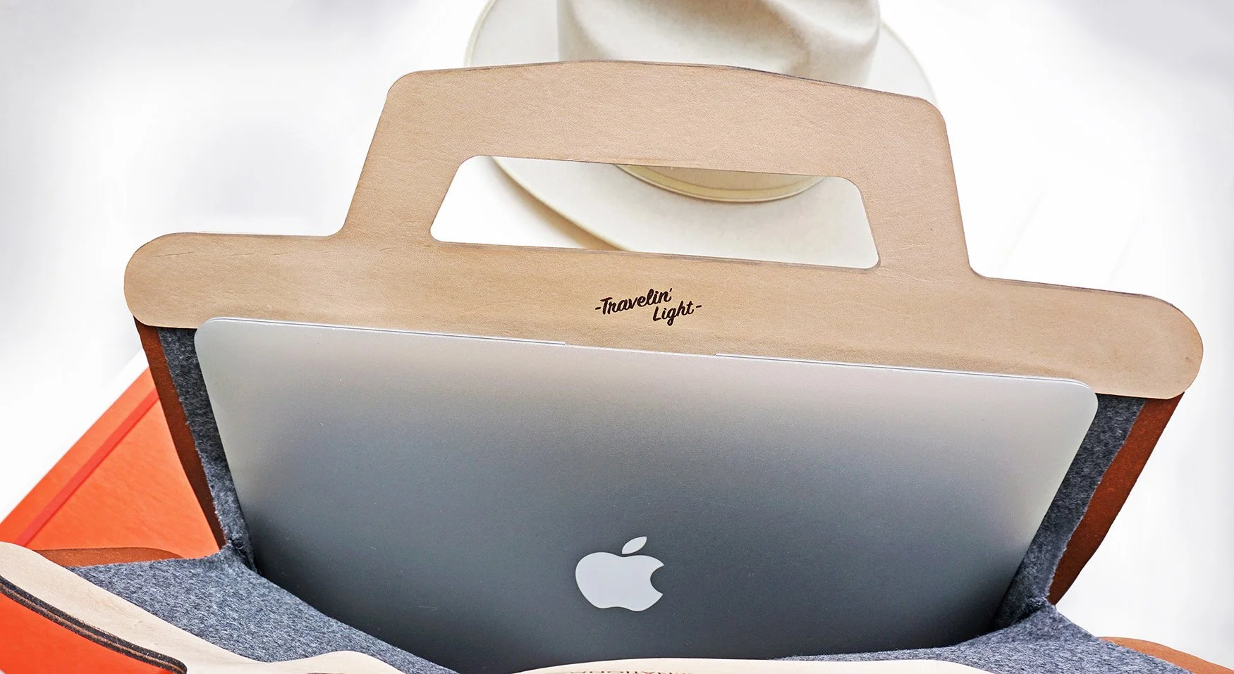 A SIMPLE IDEA, ONE PIECE OF LEATHER AND ONE PIECE OF WOOL, TO FORM A PORTFOLIO FOR YOUR LAPTOP, NOTEBOOK OR SUNDAY PAPER